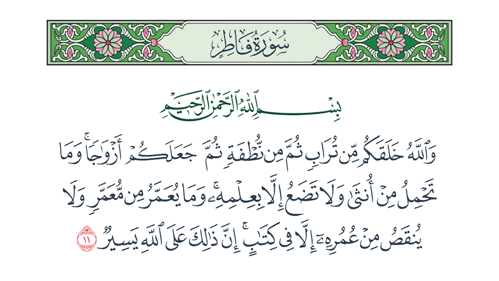 وَمَا يُعَمَّرُ مِنْ مُعَمَّرٍ وَلَا يُنْقَصُ مِنْ عُمُرِهِ إِلَّا فِي كِتَابٍ