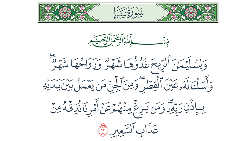 معنى: ﴿وَلِسُلَيْمَانَ الرِّيحَ غُدُوُّهَا شَهْرٌ ..﴾