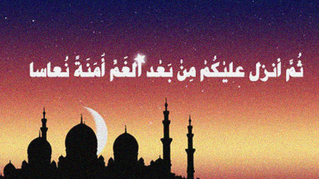 {ثُمَّ أَنْزَلَ عَلَيْكُمْ مِنْ بَعْدِ الْغَمِّ أَمَنَةً نُعَاسًا يَغْشَى طَائِفَةً مِنْكُمْ} [آل عمران : 154]. {إِذْ يُغَشِّيكُمُ النُّعَاسَ أَمَنَةً مِنْهُ وَيُنَزِّلُ عَلَيْكُمْ مِنَ السَّمَاءِ مَاءً لِيُطَهِّرَكُمْ بِهِ} [الأنفال : 11] النعاس مصدر كزكام وصداع، وفعال يجيء غالبًا ممّا يدلّ على داء وتحوّل في المزاج.