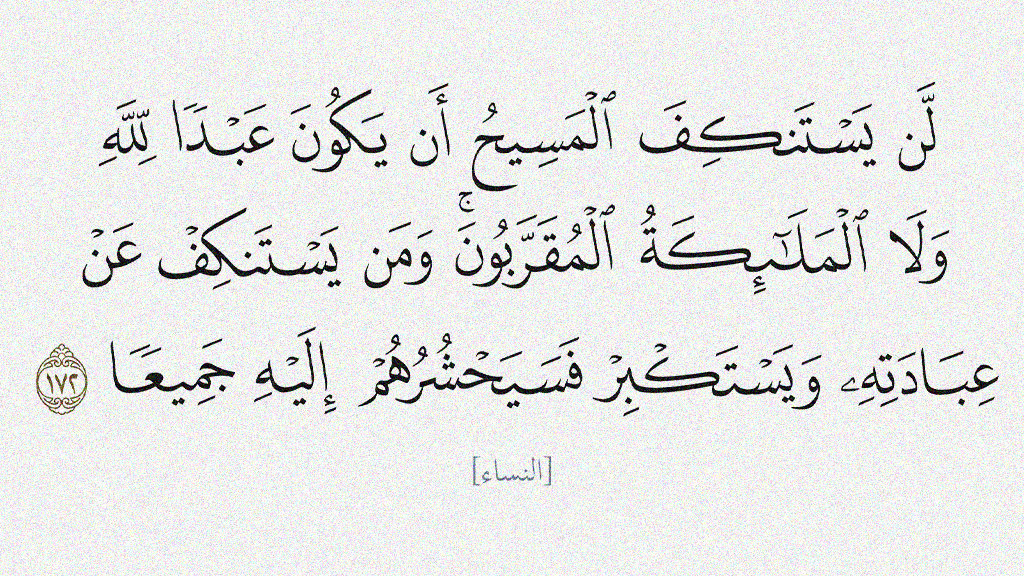 {لَنْ يَسْتَنْكِفَ الْمَسِيحُ أَنْ يَكُونَ عَبْدًا لِلَّهِ وَلَا الْمَلَائِكَةُ الْمُقَرَّبُونَ وَمَنْ يَسْتَنْكِفْ عَنْ عِبَادَتِهِ وَيَسْتَكْبِرْ فَسَيَحْشُرُهُمْ إِلَيْهِ جَمِيعًا (172) فَأَمَّا الَّذِينَ آمَنُوا وَعَمِلُوا الصَّالِحَاتِ فَيُوَفِّيهِمْ أُجُورَهُمْ وَيَزِيدُهُمْ مِنْ فَضْلِهِ وَأَمَّا الَّذِينَ اسْتَنْكَفُوا وَاسْتَكْبَرُوا فَيُعَذِّبُهُمْ عَذَابًا أَلِيمًا} [النساء : 172، 173] فالاستنكاف هو الطلب للتنحي عن العبوديّة تأنّفًا. والاستكبار ليس داخلًا في مفهوم المادّة